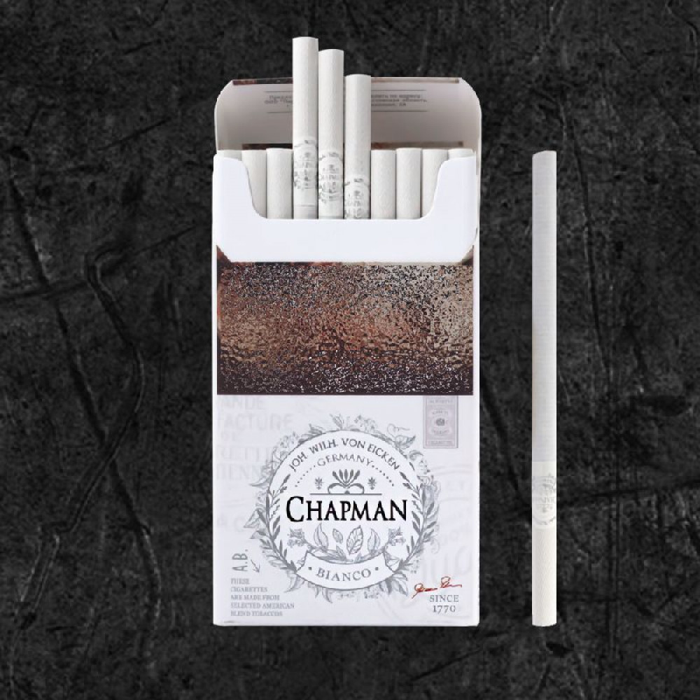 • Стильная упаковка: дизайн пачки сигарет Chapman выполнен в элегантной и минималистичной манере, идеально дополняющей образ современного человека.